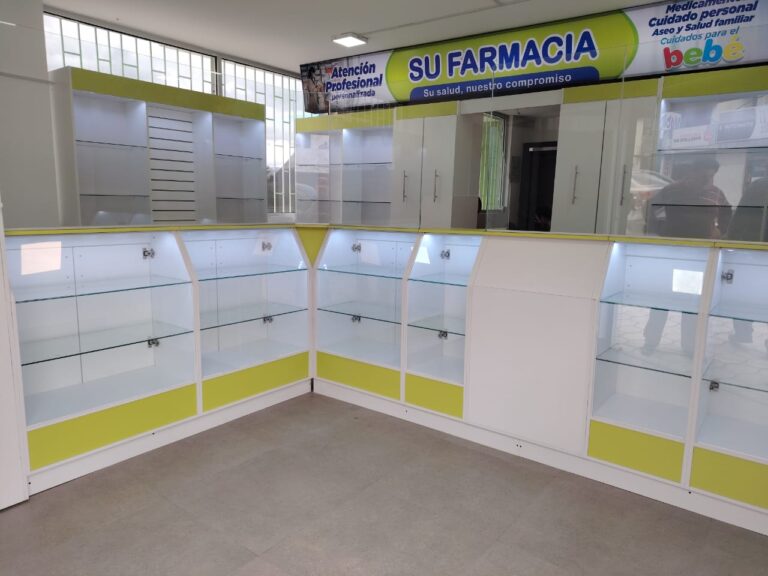 - Muebles para almacenamiento y venta de balanceados por libras.